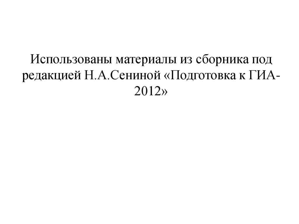 Использованы материалы из сборника подредакцией Н.А.Сениной «Подготовка к ГИА2012»