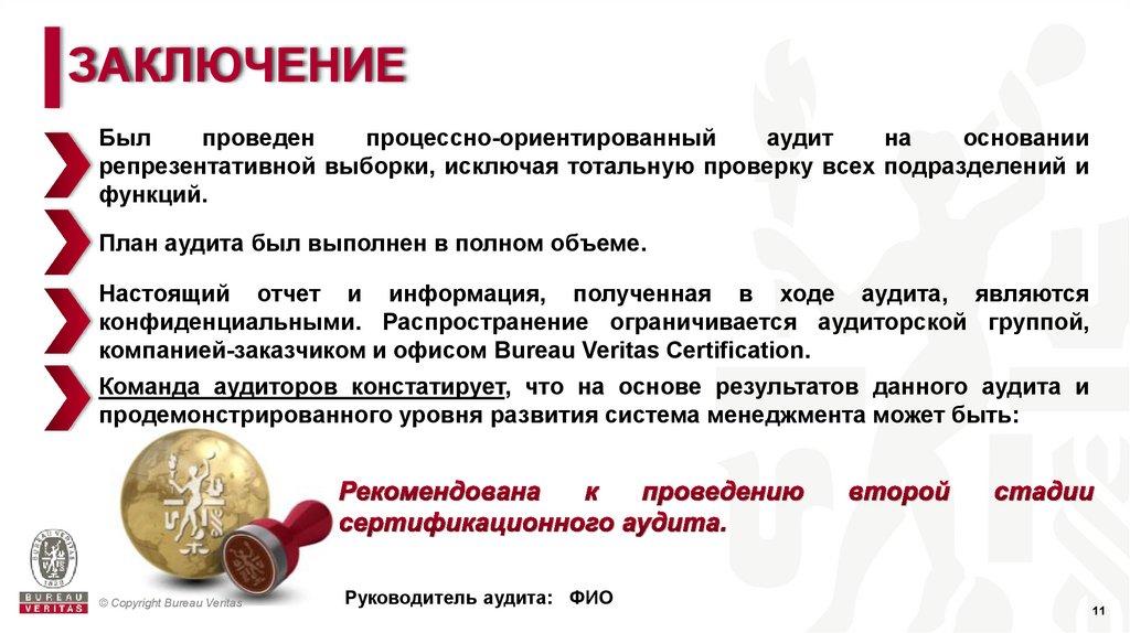 компанией-заказчиком и офисом Bureau Veritas Certification.