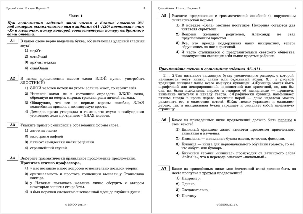 Диагностическая работа по русскому языку