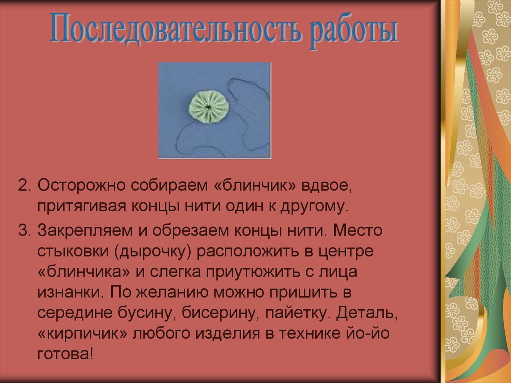 2. Осторожно собираем «блинчик» вдвое,притягивая концы нити один к другому.