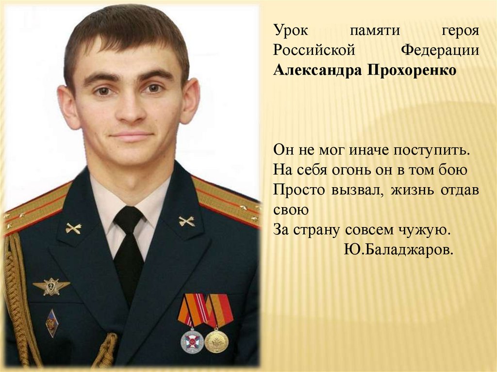 ГЕРОЮ РОССИИ АЛЕКСАНДРУ ПРОХОРЕНКО.