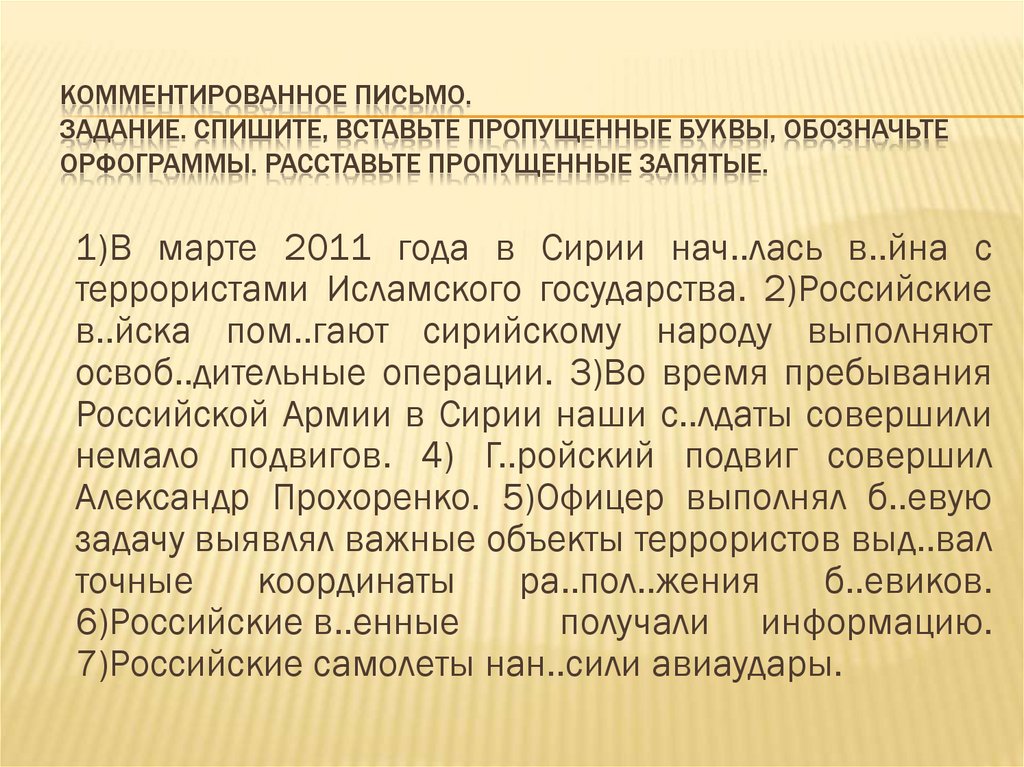 КОММЕНТИРОВАННОЕ ПИСЬМО.ЗАДАНИЕ. СПИШИТЕ, ВСТАВЬТЕ ПРОПУЩЕННЫЕ БУКВЫ, ОБОЗНАЧЬТЕ