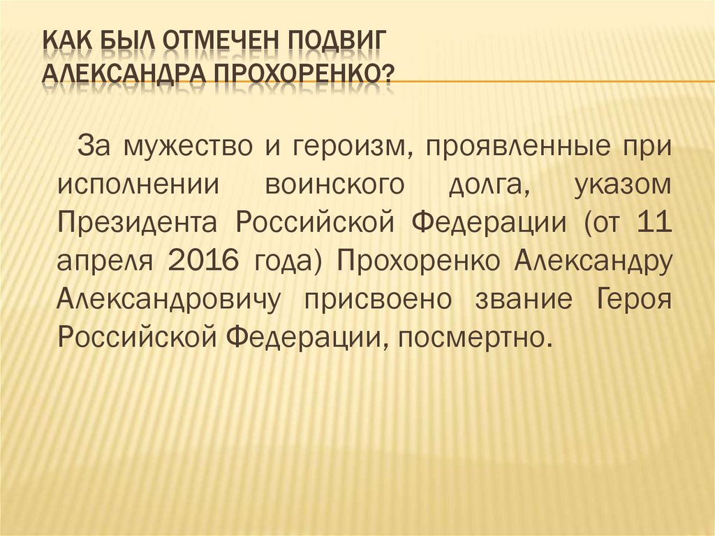 КАК БЫЛ ОТМЕЧЕН ПОДВИГАЛЕКСАНДРА ПРОХОРЕНКО?