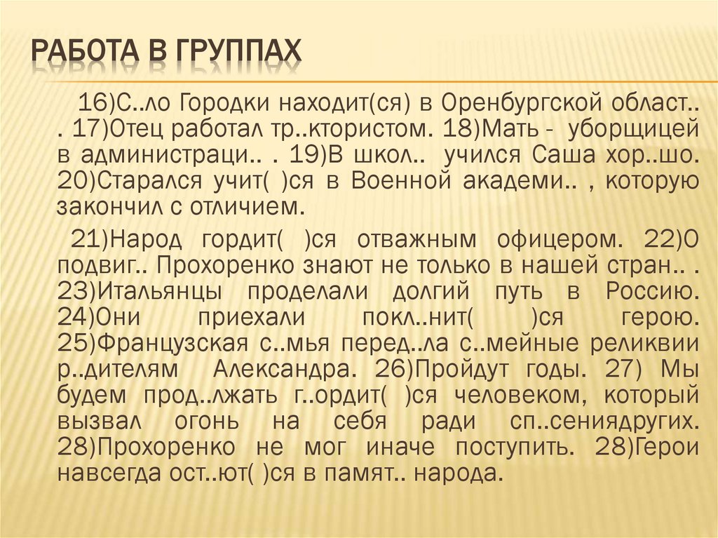 РАБОТА В ГРУППАХ16)С..ло Городки находит(ся) в Оренбургской област..
