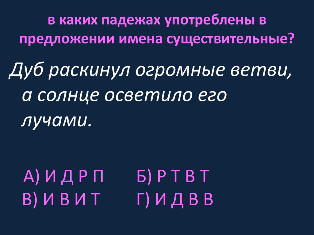 в каких падежах употреблены впредложении имена существительные?