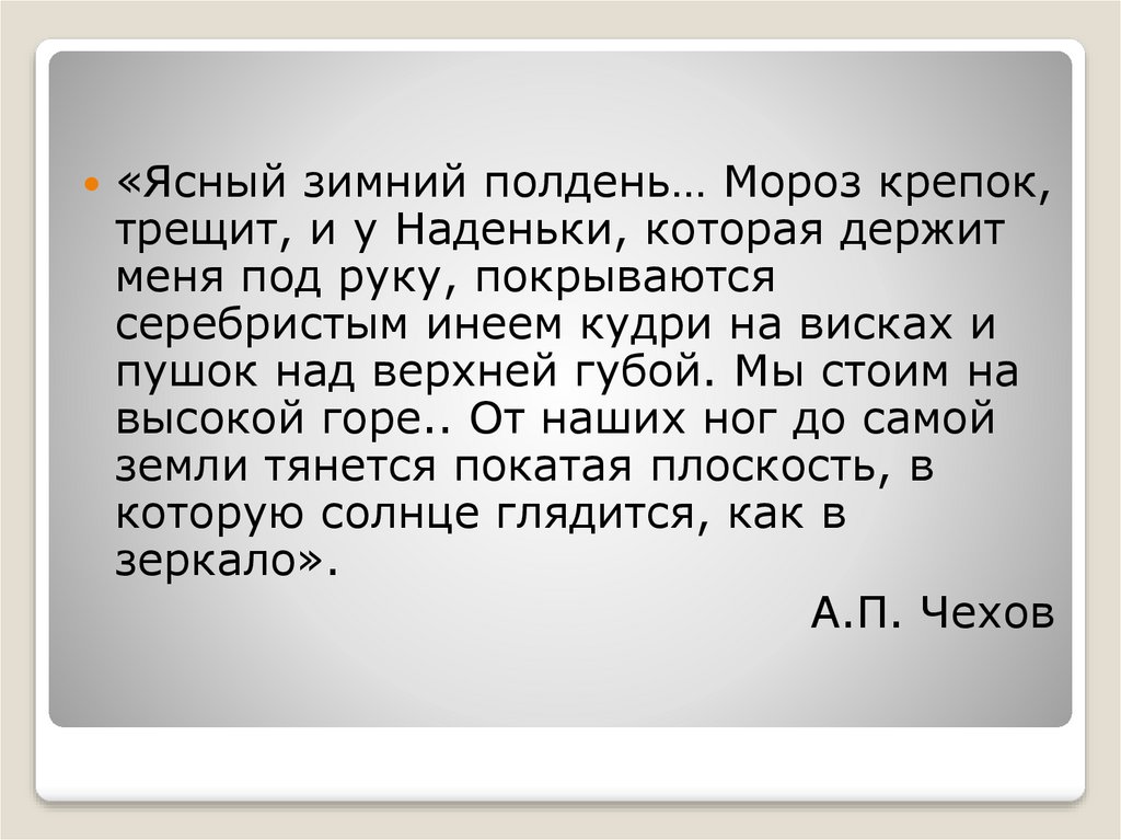 «Ясный зимний полдень… Мороз крепок,трещит, и у Наденьки, которая держит