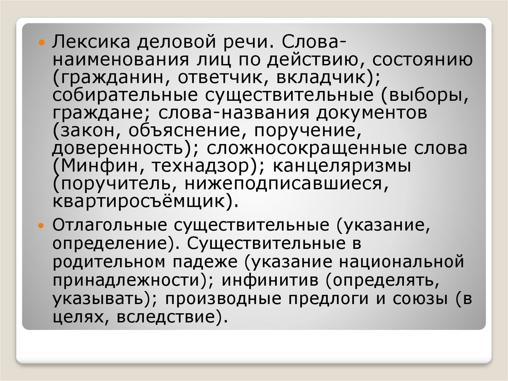 Лексика деловой речи. Слованаименования лиц по действию, состоянию(гражданин, ответчик, вкладчик);