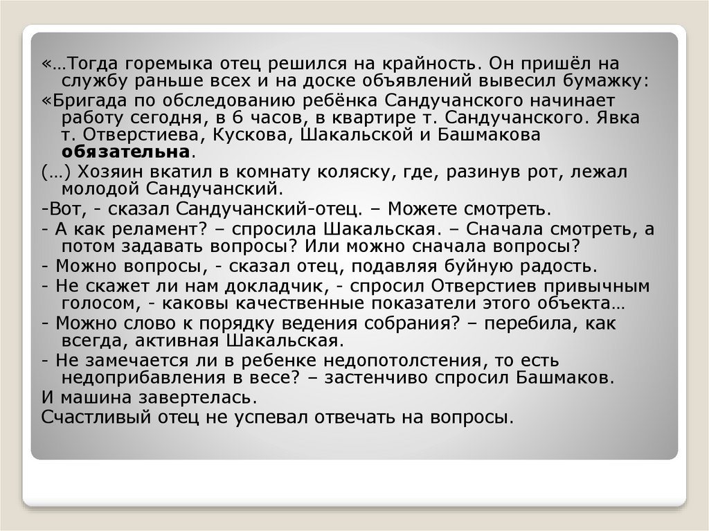 «…Тогда горемыка отец решился на крайность. Он пришёл наслужбу раньше всех и на доске объявлений вывесил бумажку:
