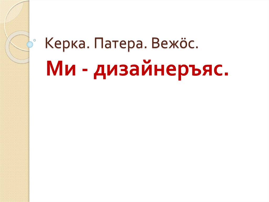 Керка. Патера. Вежӧс.Ми - дизайнеръяс.
