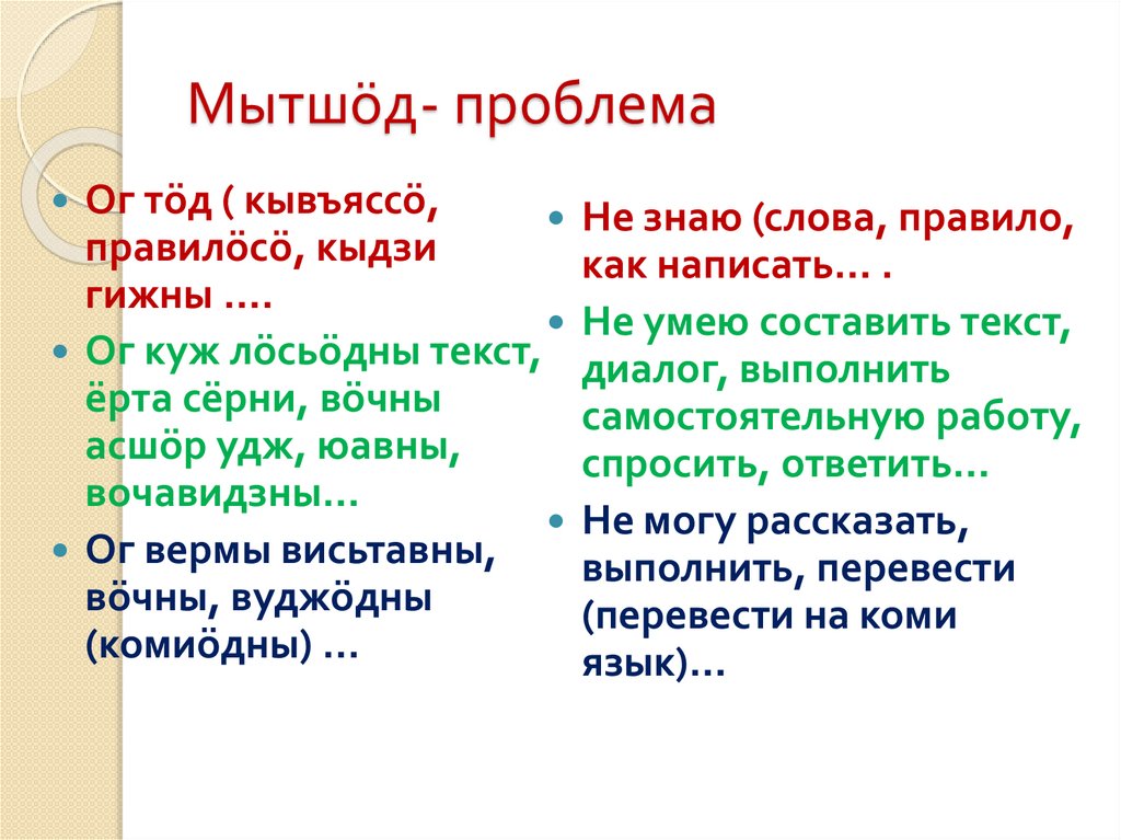 Мытшöд- проблемаОг тöд ( кывъяссö,