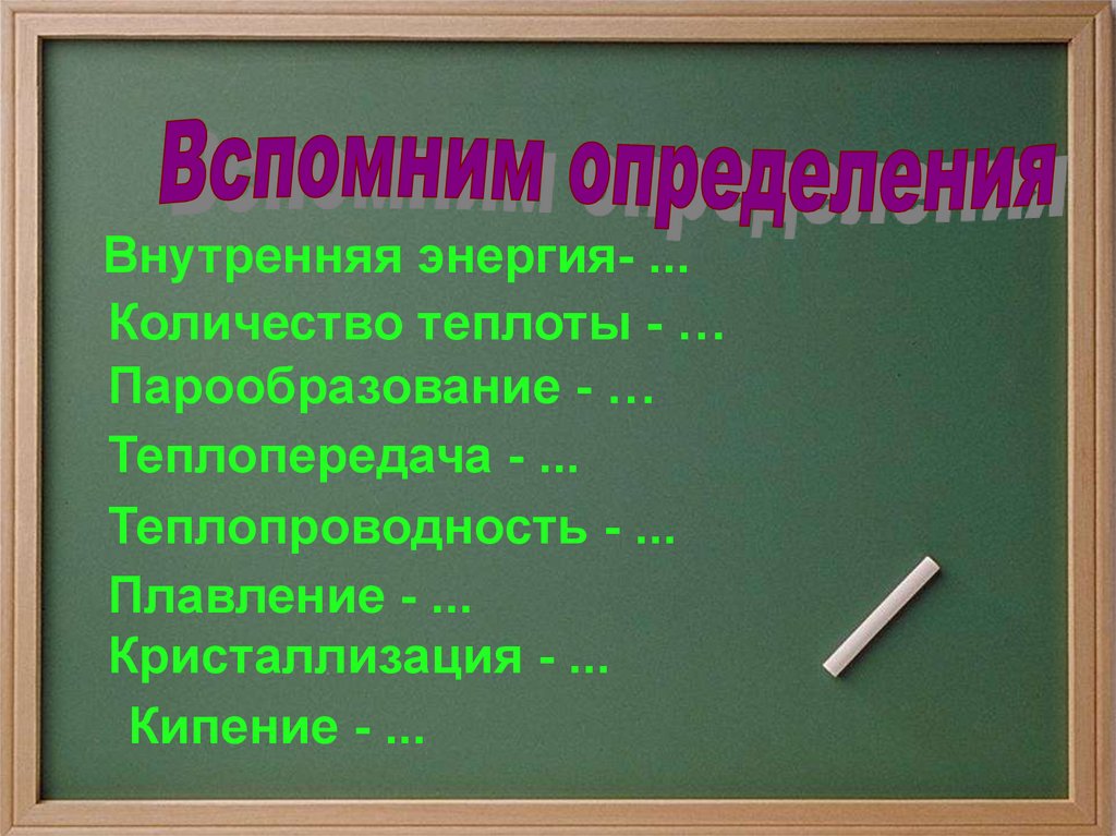 Внутренняя энергия- ...Количество теплоты - …