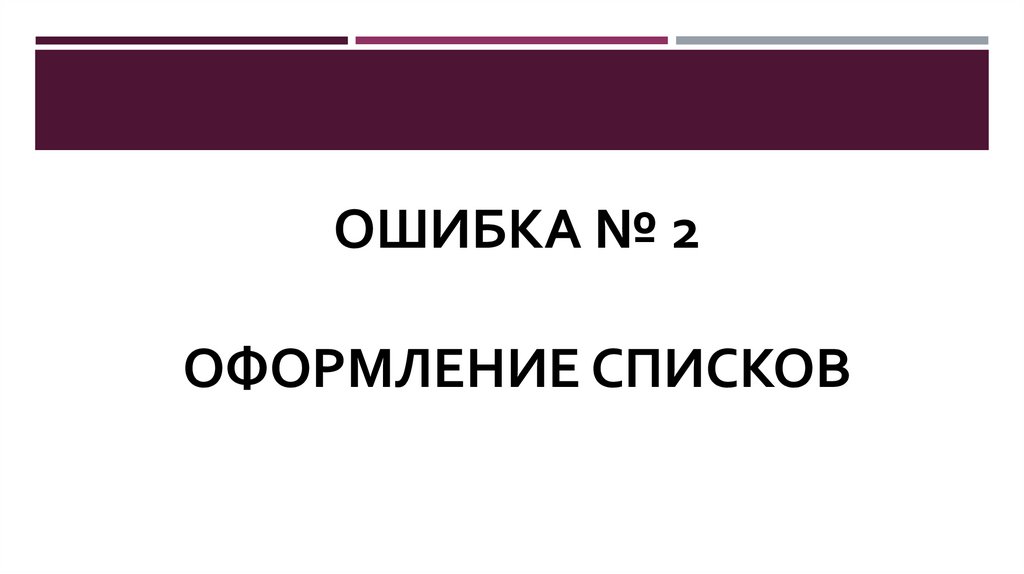 ОШИБКА № 2ОФОРМЛЕНИЕ СПИСКОВ