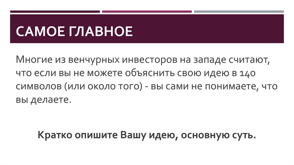 САМОЕ ГЛАВНОЕМногие из венчурных инвесторов на западе считают,