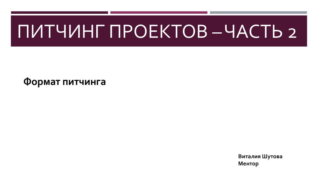 ПИТЧИНГ ПРОЕКТОВ –ЧАСТЬ 2Формат питчинга