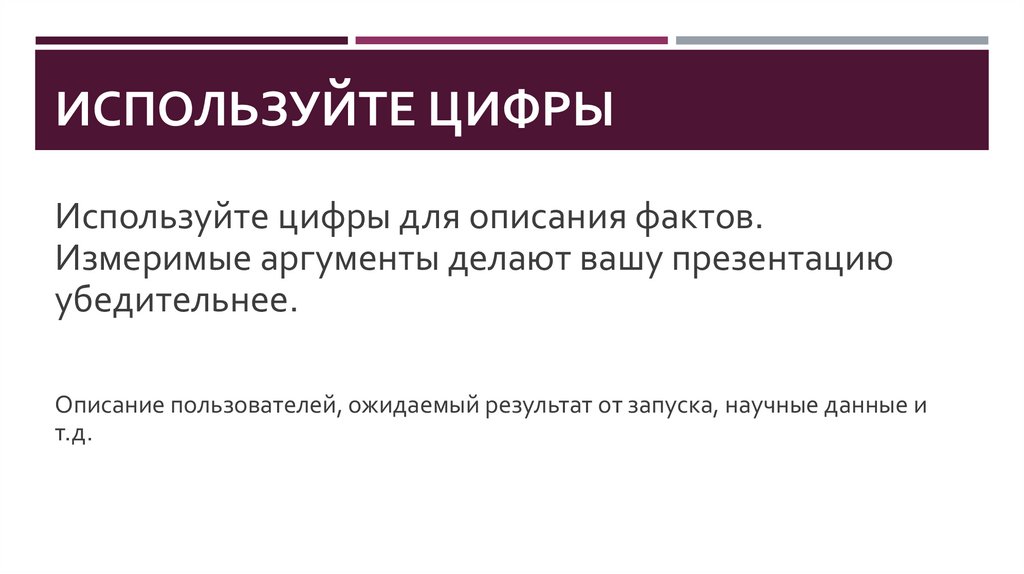 ИСПОЛЬЗУЙТЕ ЦИФРЫИспользуйте цифры для описания фактов.