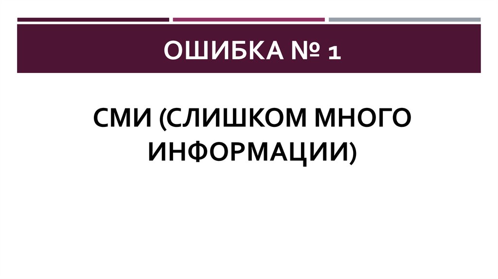 ОШИБКА № 1СМИ (СЛИШКОМ МНОГО