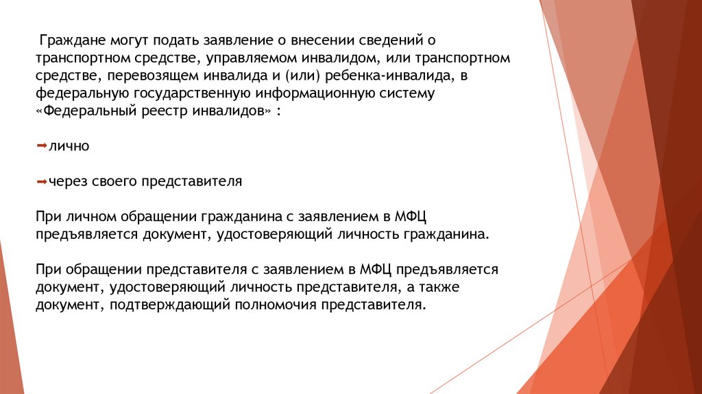Граждане могут подать заявление о внесении сведений отранспортном средстве, управляемом инвалидом, или транспортном