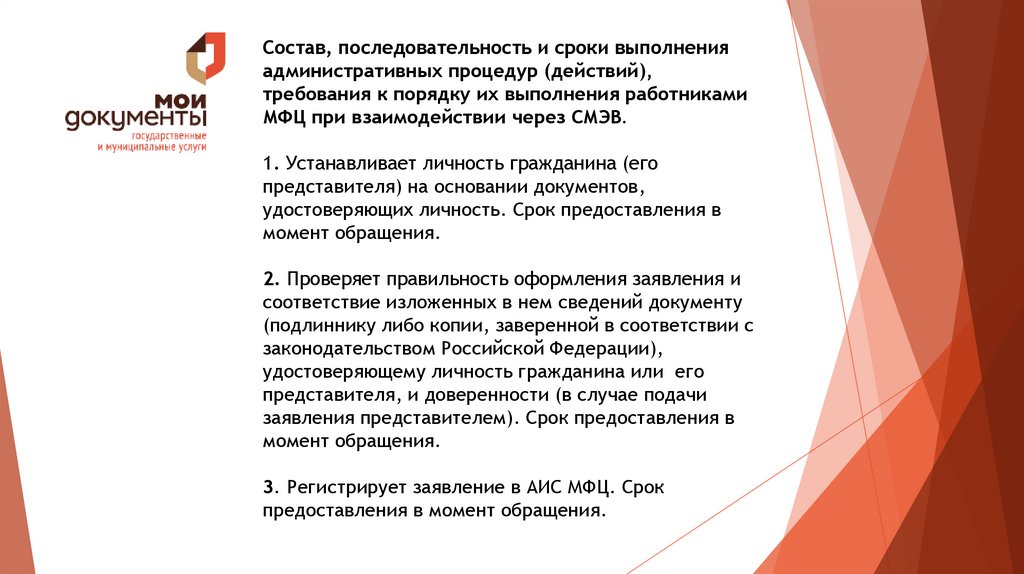 3. Регистрирует заявление в АИС МФЦ. Срок