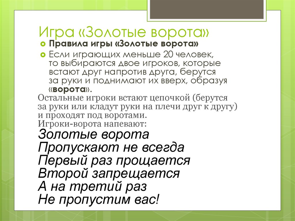 Игра «Золотые ворота»Правила игры «Золотые ворота»