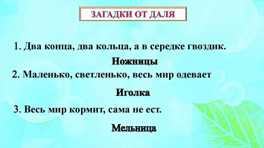 Два конца, два кольца, а в середке гвоздик.Маленько, светленько, весь мир одевает