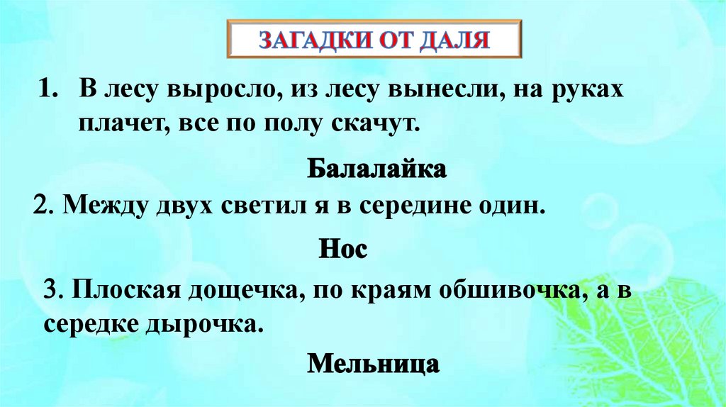 1. В лесу выросло, из лесу вынесли, на рукахплачет, все по полу скачут.