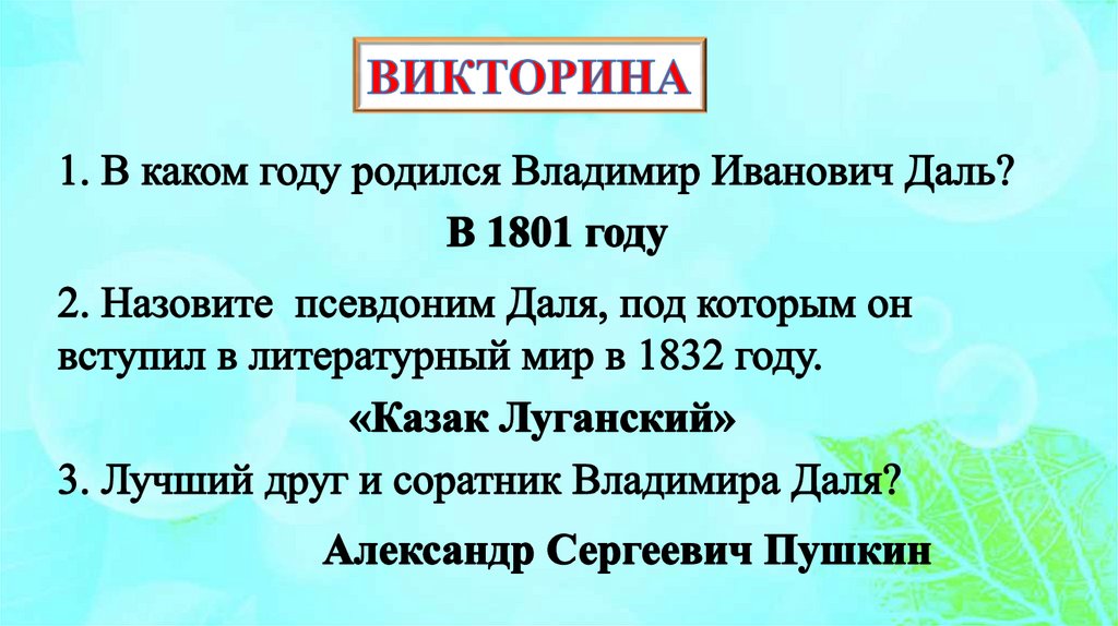 Информационный часк 220 – летию В. И. Даля
