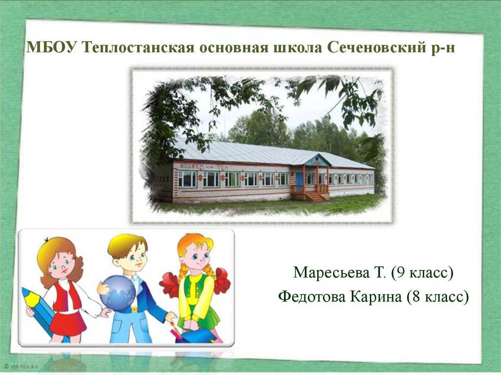 МБОУ Теплостанская основная школа Сеченовский р-нМаресьева Т. (9 класс)