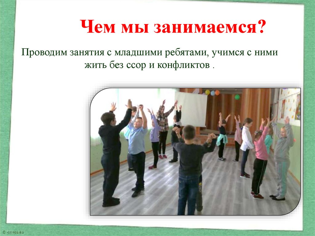 Чем мы занимаемся?Проводим занятия с младшими ребятами, учимся с ними