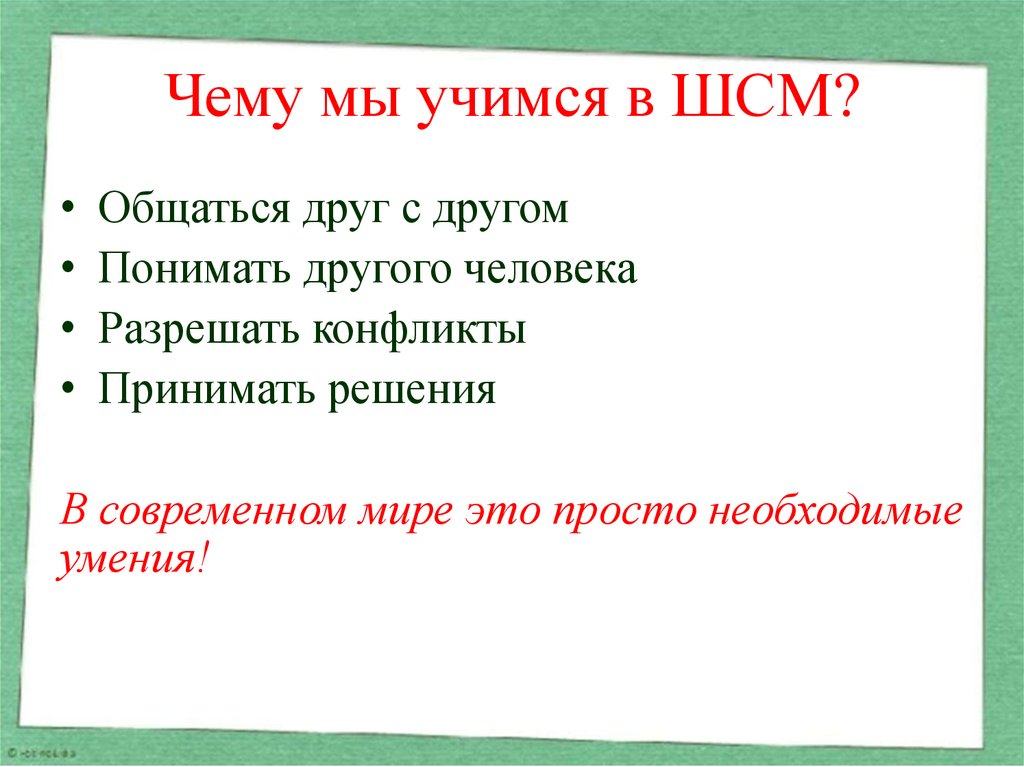 Чему мы учимся в ШСМ?Общаться друг с другом