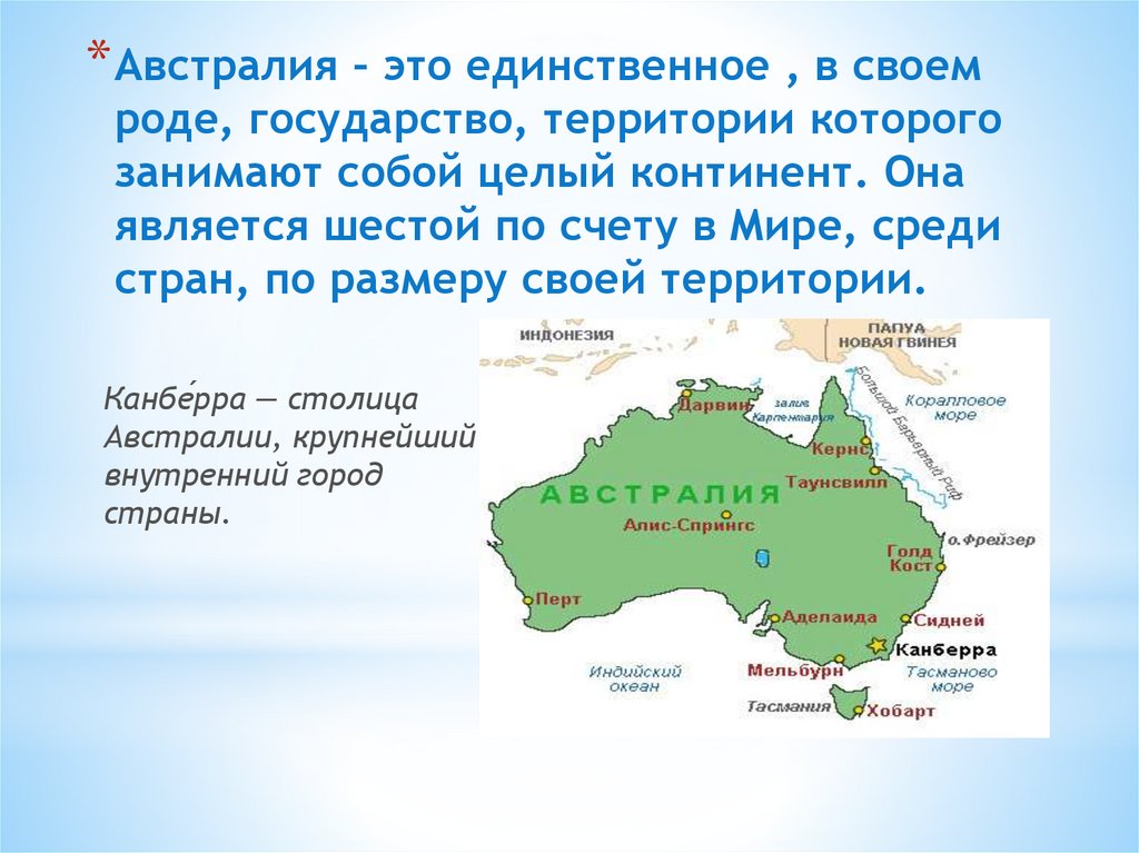 *Австралия – это единственное , в своемроде, государство, территории которого