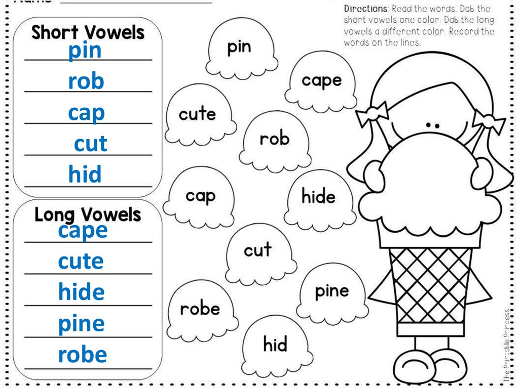 2. Copy vowels. Раскрасить слова с гласной в закрытом слоге (short) одним