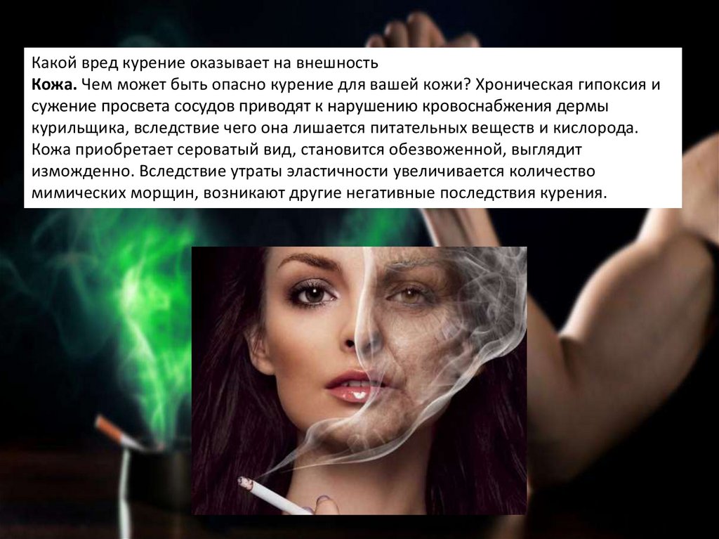 Какой вред курение оказывает на внешностьКожа. Чем может быть опасно курение для вашей кожи? Хроническая гипоксия и