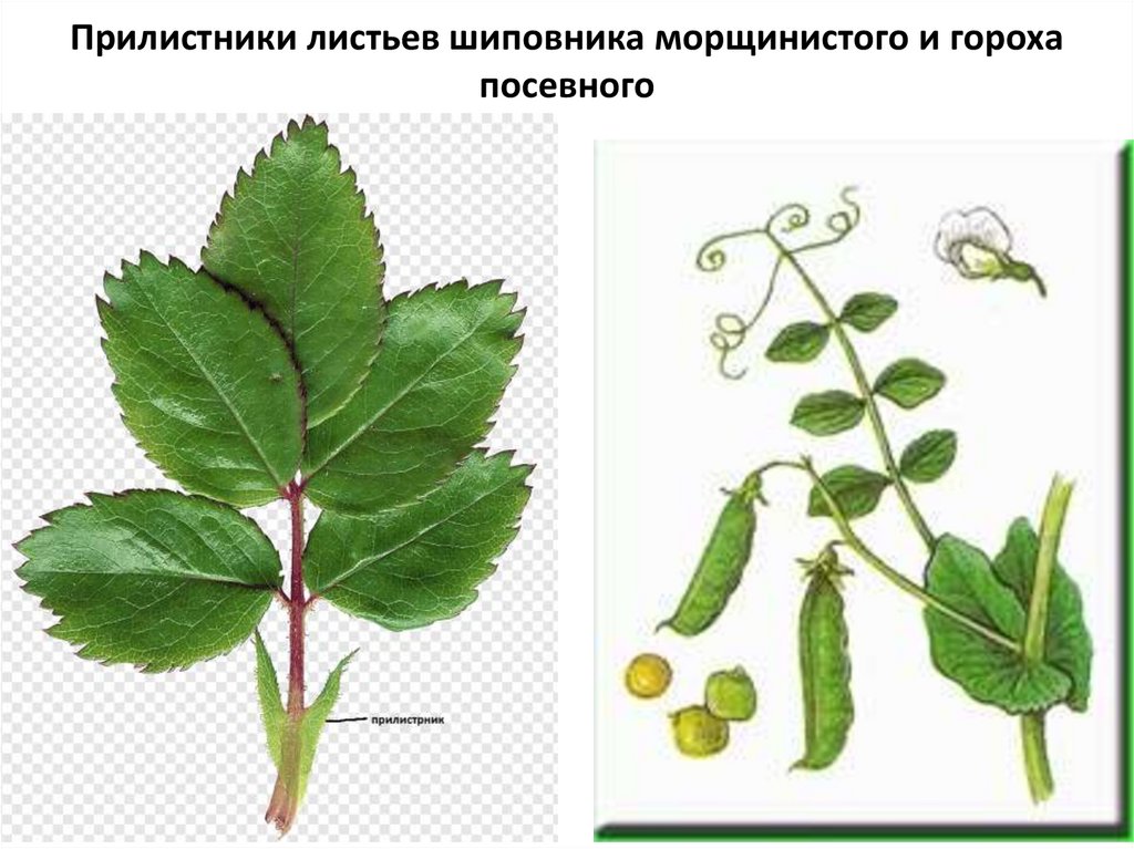 Прилистники листьев шиповника морщинистого и горохапосевного