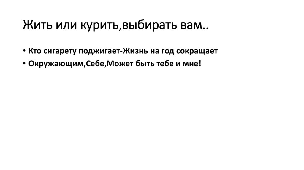 Жить или курить,выбирать вам..• Кто сигарету поджигает-Жизнь на год сокращает