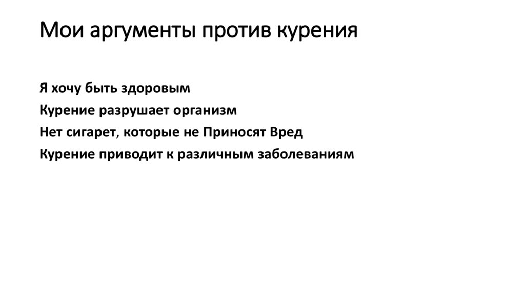 Мои аргументы против куренияЯ хочу быть здоровым
