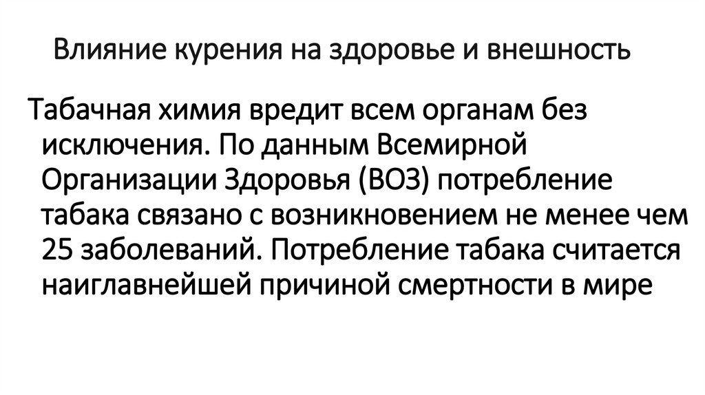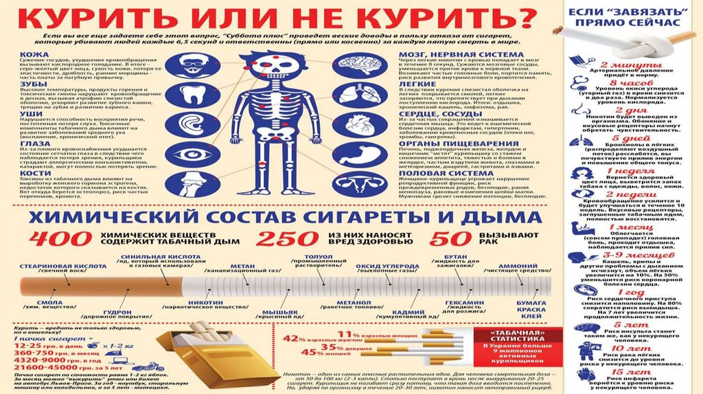 Влияние курения на здоровье и внешностьТабачная химия вредит всем органам без