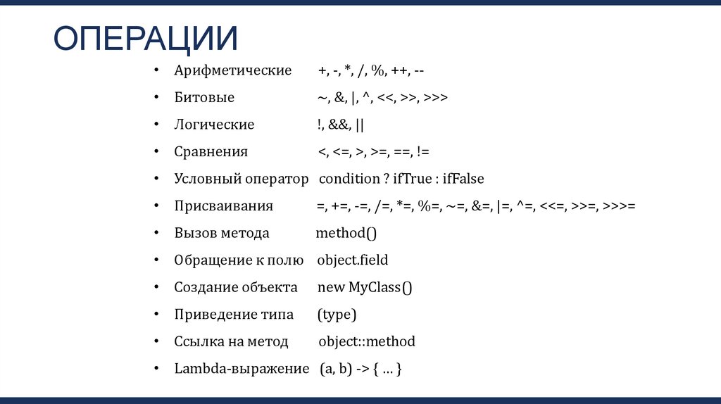 Операторы JAVA