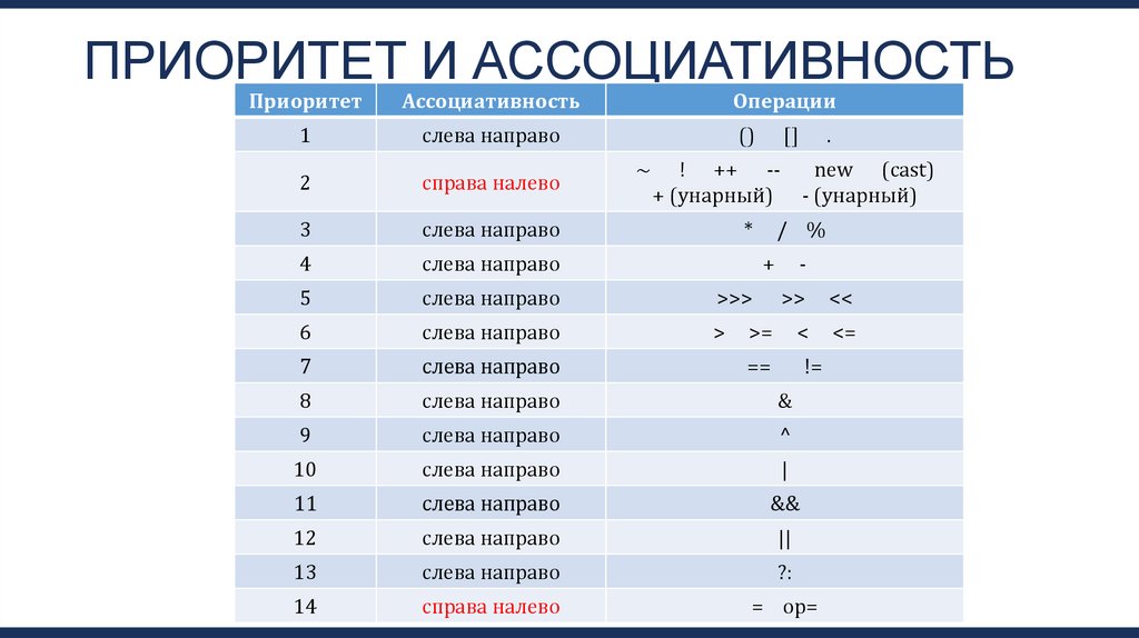 ПРИОРИТЕТ И АССОЦИАТИВНОСТЬПриоритет