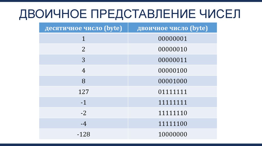 ДВОИЧНОЕ ПРЕДСТАВЛЕНИЕ ЧИСЕЛдесятичное число (byte)