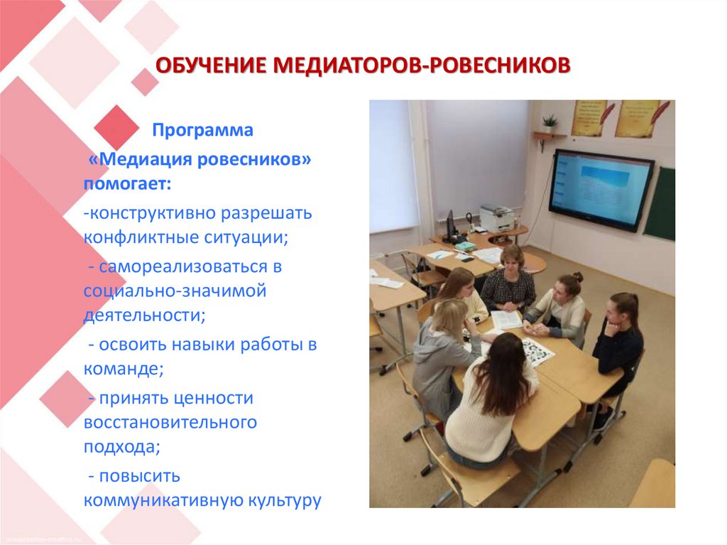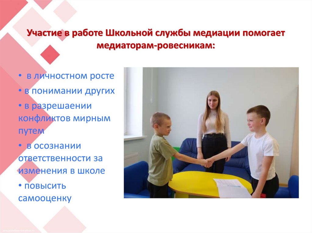 Участие в работе Школьной службы медиации помогаетмедиаторам-ровесникам: