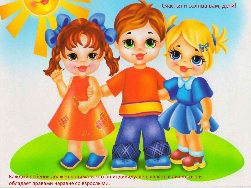 Счастья и солнца вам, дети!Каждый ребёнок должен понимать, что он индивидуален, является личностью и