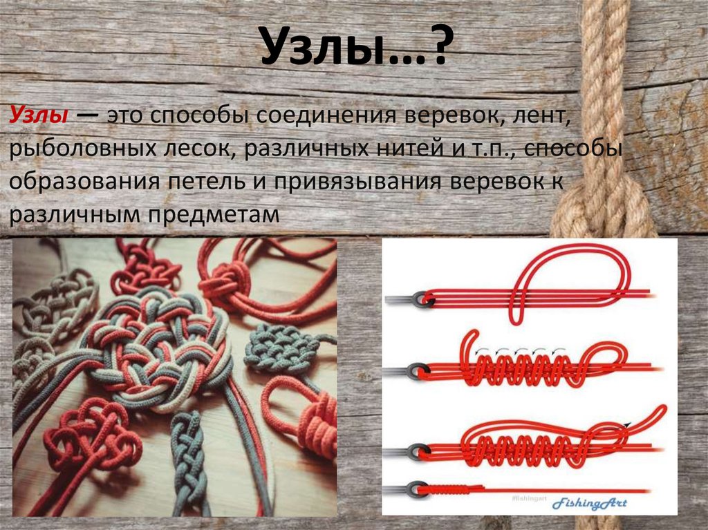 Узлы…?Узлы — это способы соединения веревок, лент,