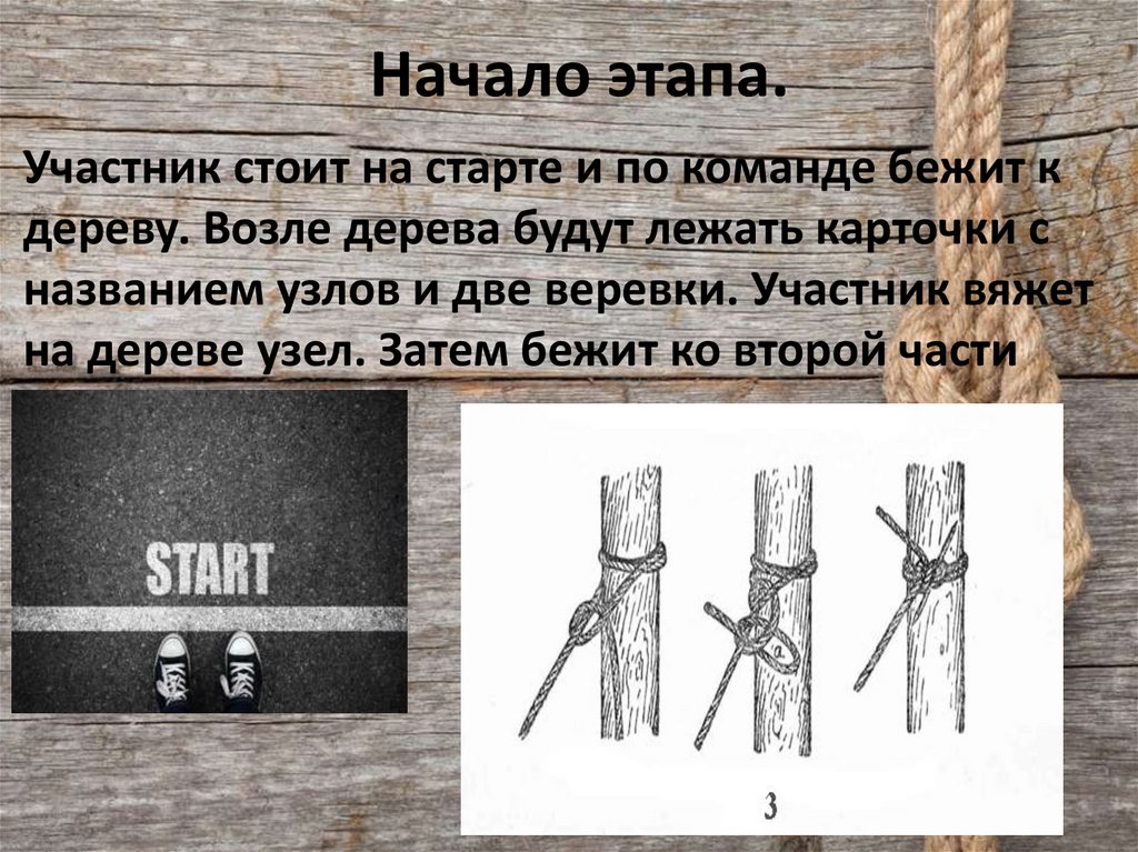 Начало этапа.Участник стоит на старте и по команде бежит к