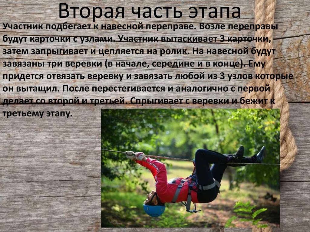 делает со второй и третьей. Спрыгивает с веревки и бежит к