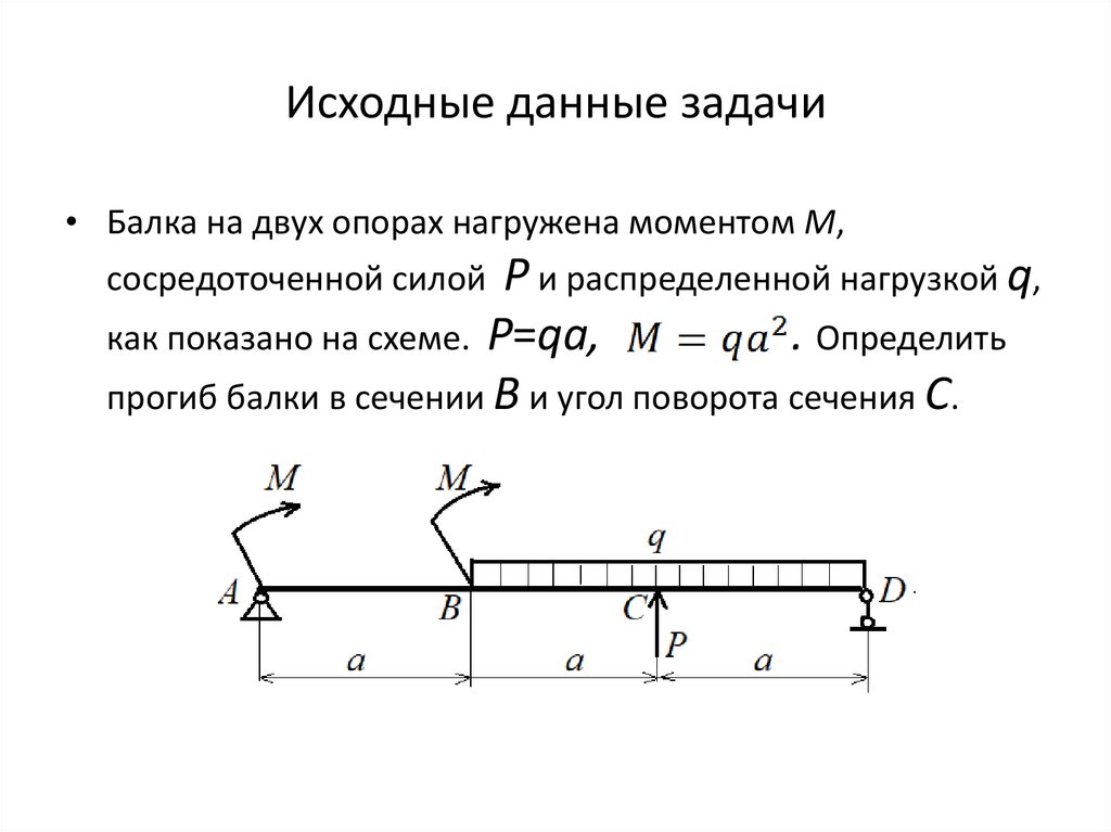 Исходные данные задачи• Балка на двух опорах нагружена моментом M,