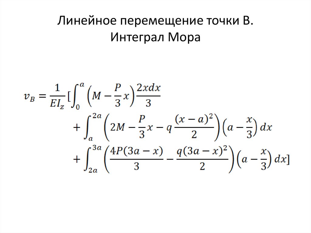 Линейное перемещение т. В. Единичная сила.Опорные реакции. Моменты на каждом участке