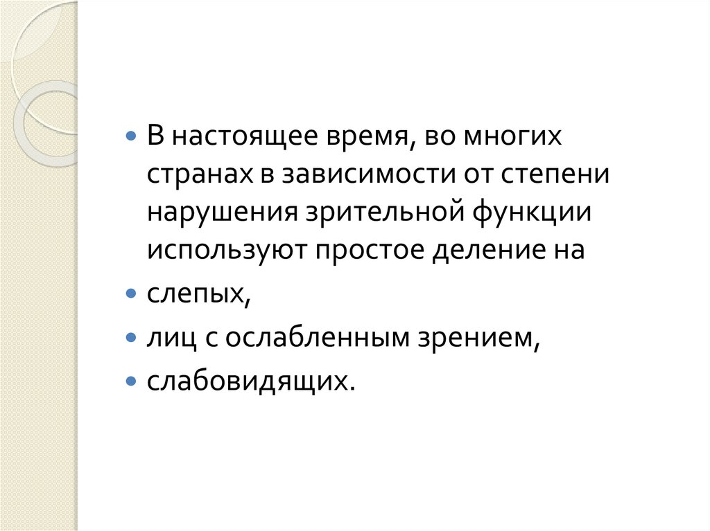 Классификация нарушениязрительной функции в зависимости