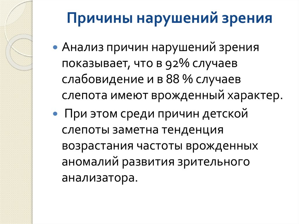 Причины нарушений зренияАнализ причин нарушений зрения