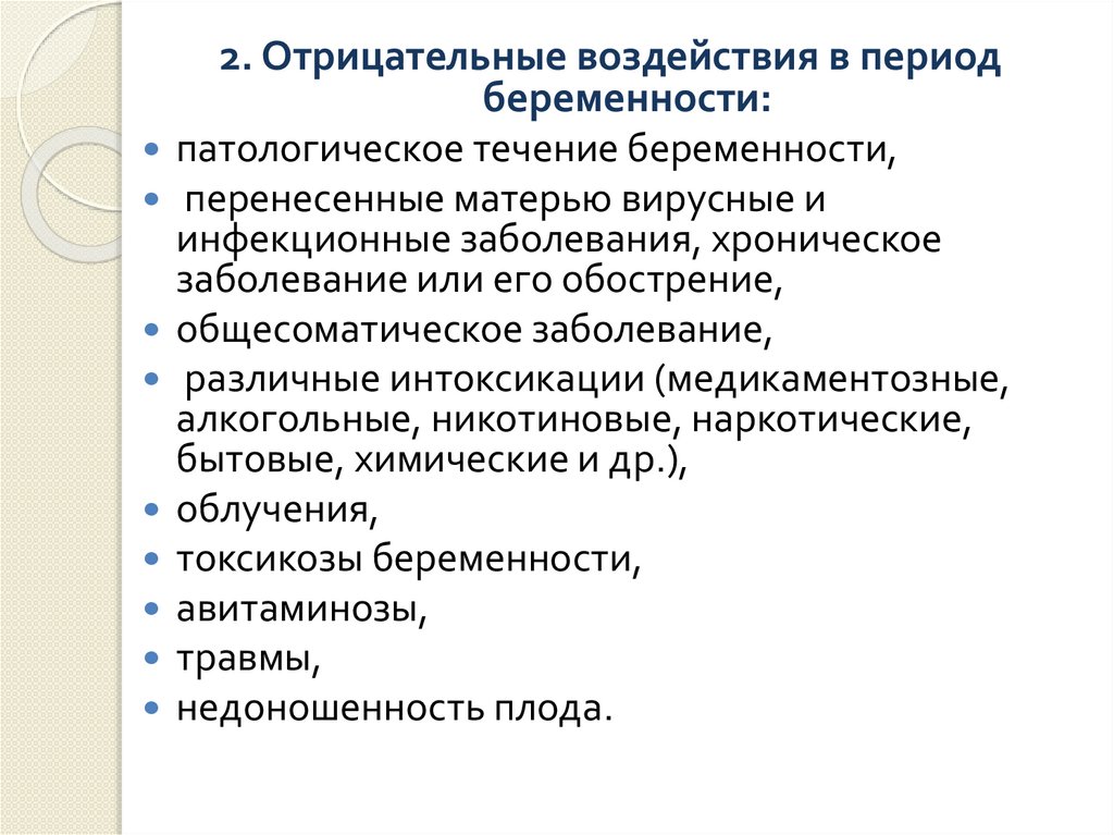 2. Отрицательные воздействия в периодбеременности: