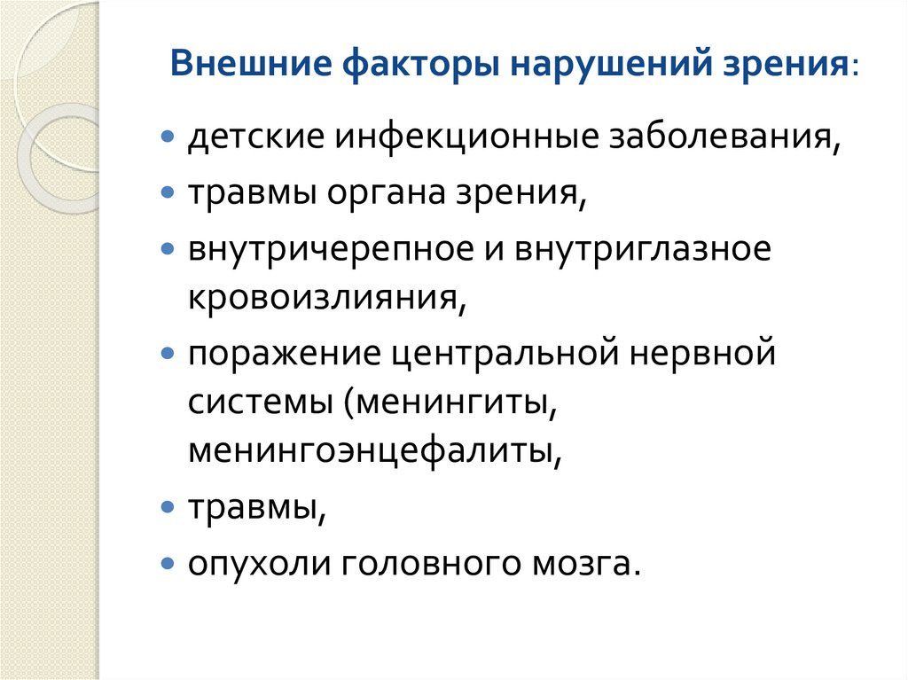 Внешние факторы нарушений зрения:детские инфекционные заболевания,